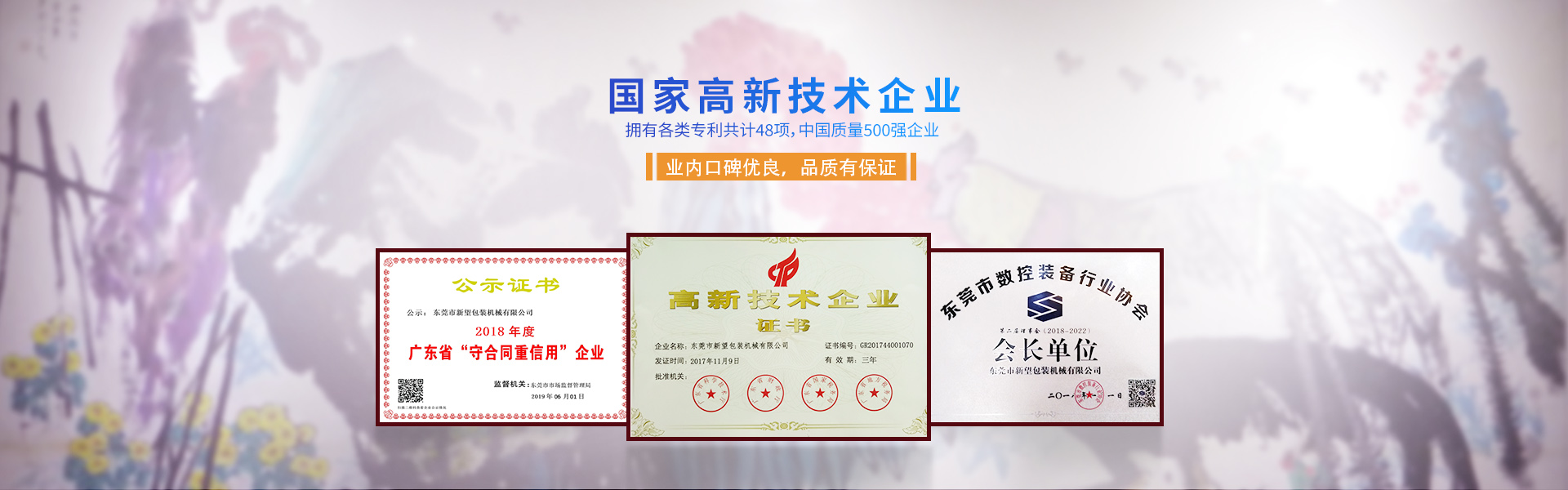 新望機(jī)械成立于1998年,位于東莞市東部工業(yè)園區(qū)的中心地帶——企石鎮(zhèn)東平村,交通方便、環(huán)境優(yōu)美舒適、視野開(kāi)闊。公司注冊(cè)資本2000萬(wàn)元,擁有辦公室、廠房等18,000多平方米。已通過(guò)ISO9001:2015國(guó)際質(zhì)量管理體系認(rèn)證,擁有國(guó)家各類專利共計(jì)58項(xiàng)。是東莞市企石鎮(zhèn)工商聯(lián)副會(huì)長(zhǎng)單位、東莞市企石鎮(zhèn)文學(xué)藝術(shù)界聯(lián)合會(huì)副主席單位、東莞市環(huán)保包裝行業(yè)協(xié)會(huì)副會(huì)長(zhǎng)單位、東莞市數(shù)控裝備行業(yè)協(xié)會(huì)第二屆會(huì)長(zhǎng)單位、廣東省包裝技術(shù)協(xié)會(huì)常務(wù)理事單位、廣東省膠粘劑行業(yè)協(xié)會(huì)理事單位、廣東省著名商標(biāo)企業(yè)、國(guó)家高新技術(shù)企業(yè)。